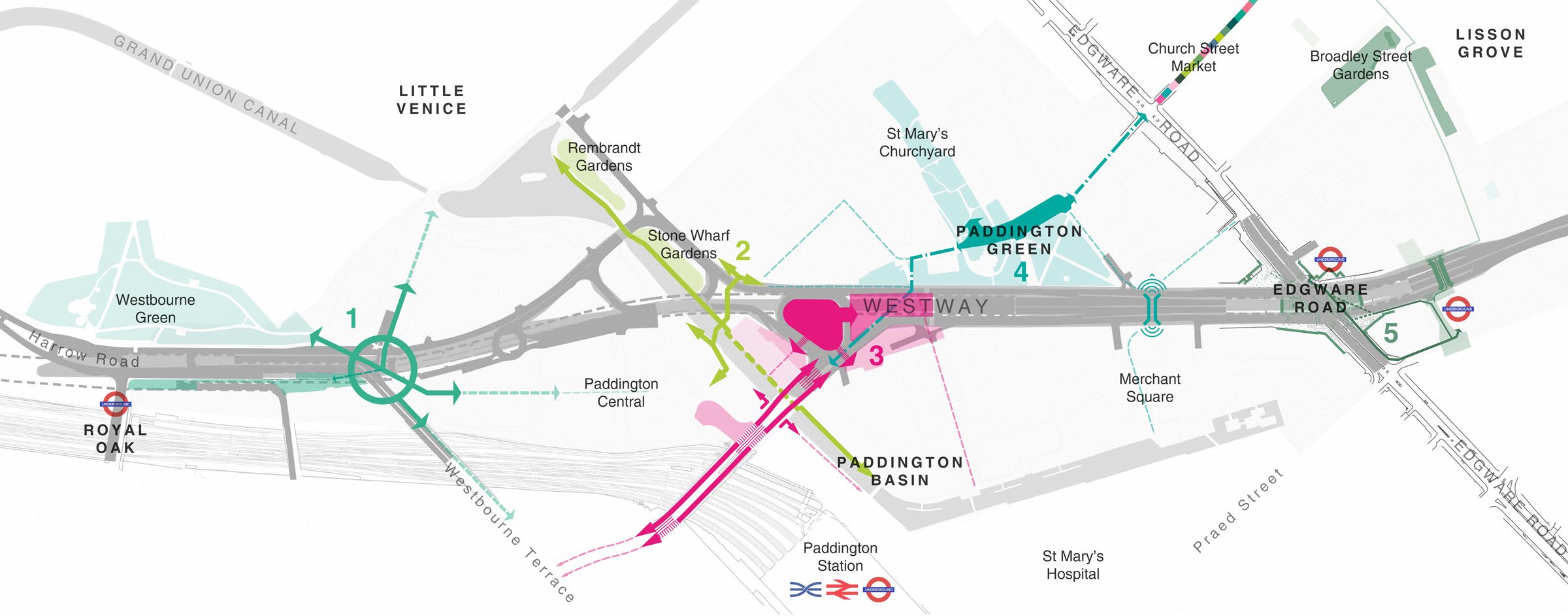 Over the last 250 years, Paddington and the communities that live and work there have been increasingly separated by large strips of infrastructure: the railway, the canal, and most visibly the Westway. There are only a few safe places to cross this infrastructure, meaning that it has become increasingly difficult to walk and cycle to nearby neighbourhoods, and therefore communities are potentially missing out on great opportunities and places that are nearby. This is the issue that this project aims to address.