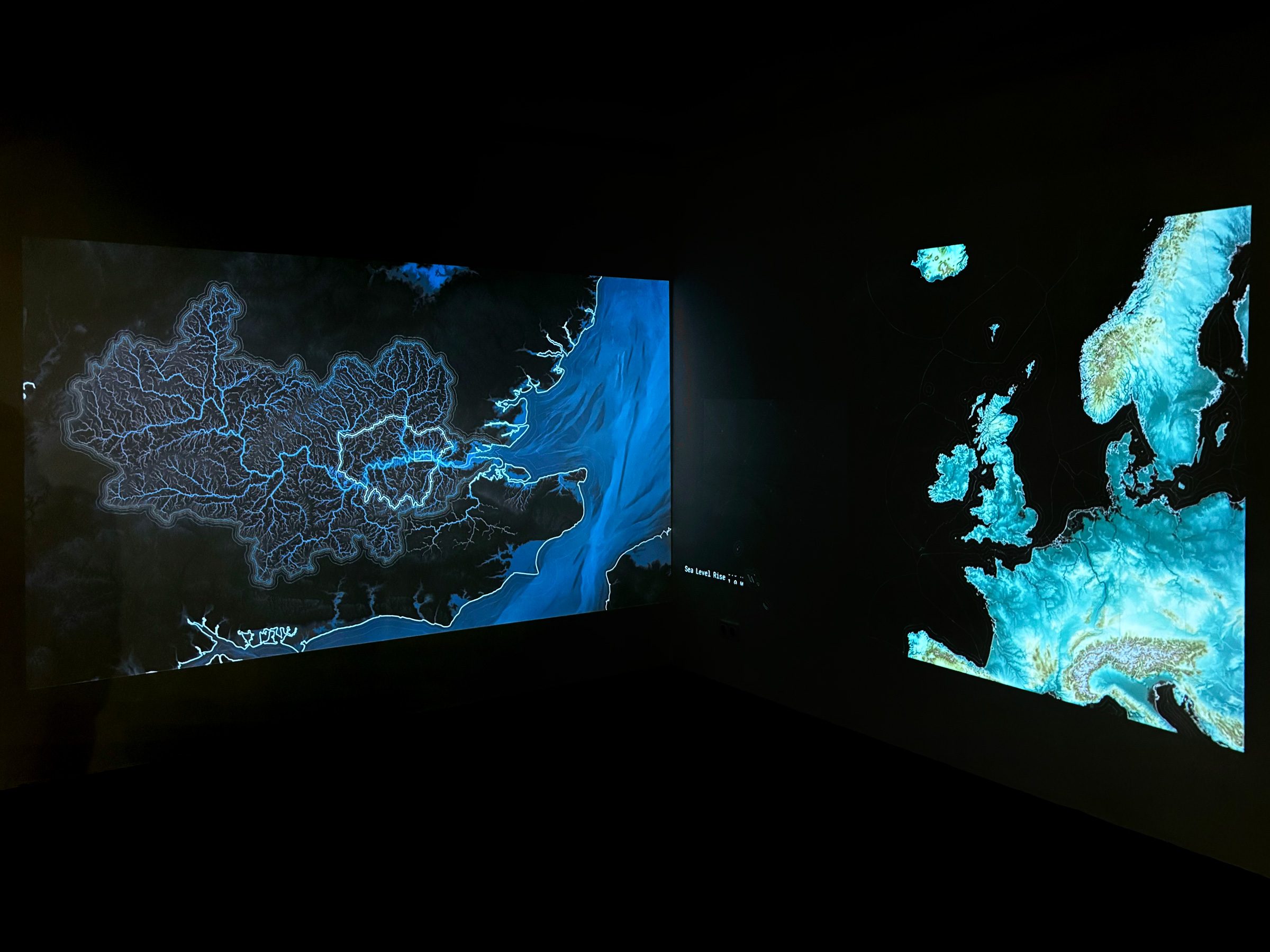 Through a series of cartographic collages, the work reframes the North Sea not as a body of water divided by nation-states, but as an interconnected transboundary region shaped by flows of water, ecology, infrastructure, and culture. It traces the region’s evolution, from the submerged landscape of Doggerland and the transboundary networks of the Hanseatic League to the industrialisation, extraction, and renewable transitions that define it today.