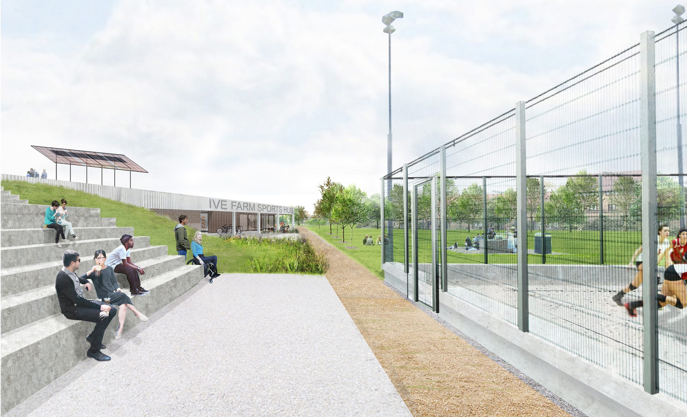 We have been working in Waltham Forest on the council-led regeneration of the Ive Farm Sports Ground in Leyton (4.9ha). The site is categorised as Metropolitan Open Land yet has been neglected and largely inaccessible for many years, with a derelict former pavilion. The proposal includes two all-weather multi-use sports pitches that address a critical shortfall in outdoor sports provision for schools, club and community use across the borough. The project also includes an international standard beach volleyball arena, 60m sprint track, a new sports pavilion, landscaped perimeter jogging trails and natural gym facilities, a woodland car park, community allotments, new and relocated pedestrian and cyclist bridges across the Dagenham Brook and an outdoor petanque area.