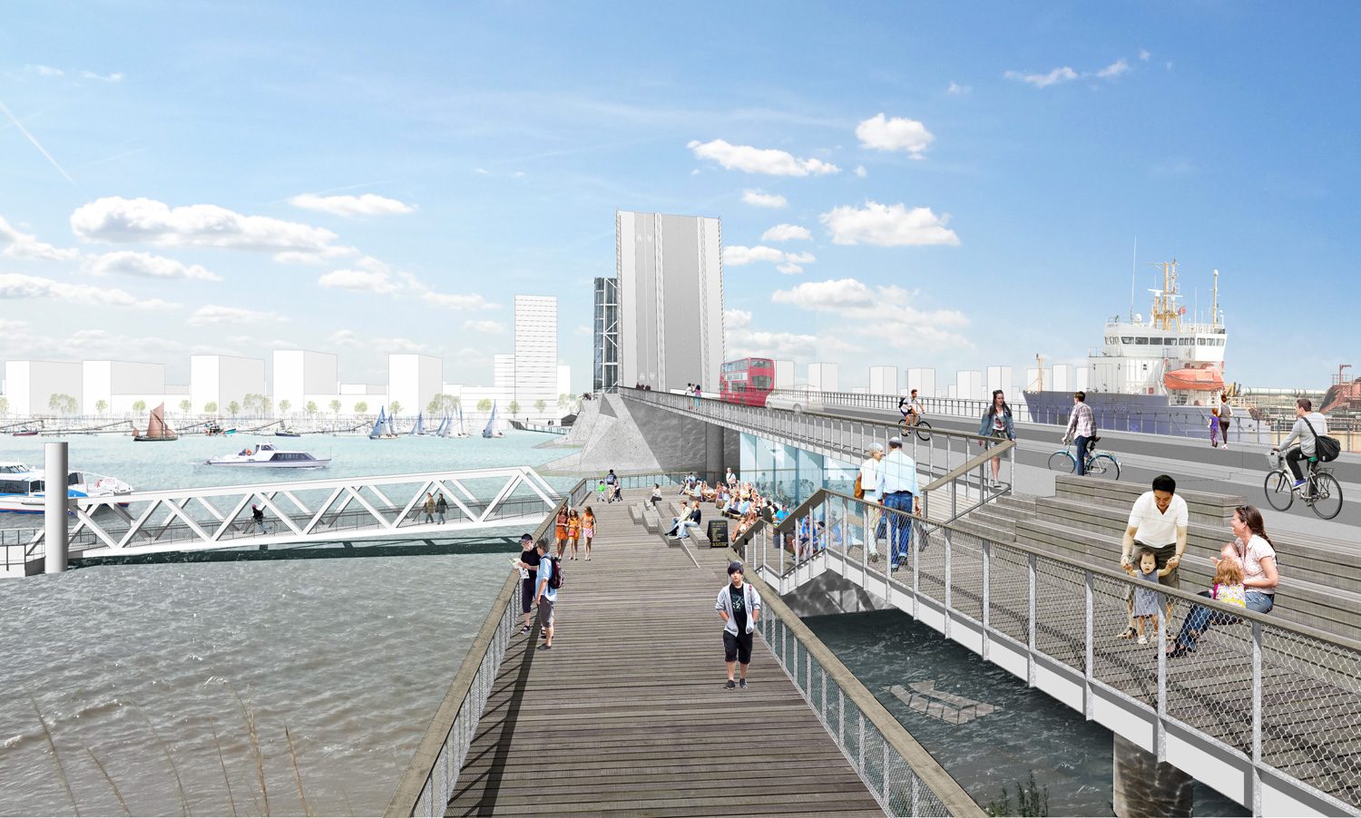 Illustration: Our proposals produced during the tender process of Lot 7b, for a crossing between the key growth areas of Barking Riverside and North Thamesmead.