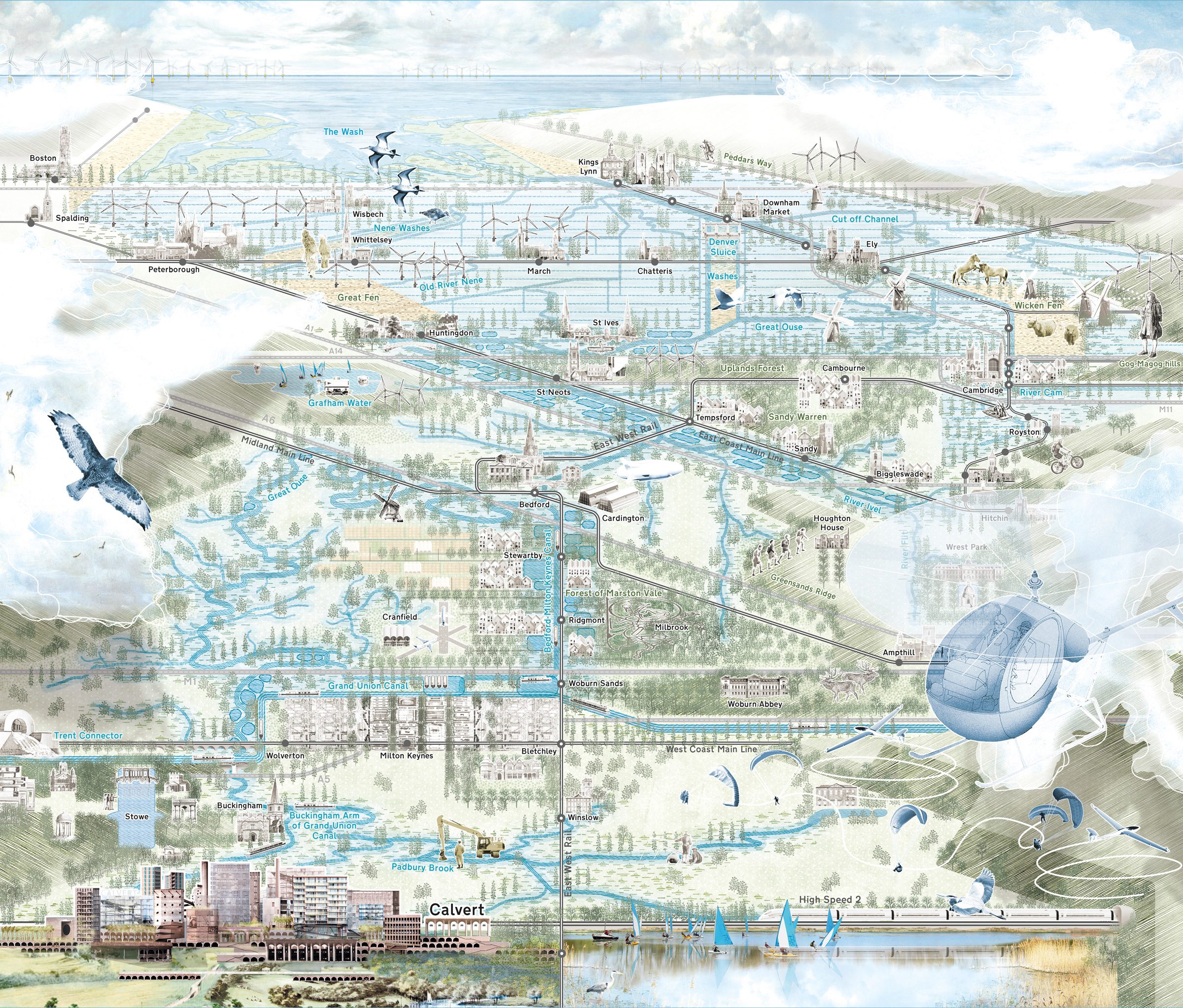 Ten years ago the Architects Journal published 5th Studio’s proposal for a new ‘City in a Garden’ at Calvert, the point where HS2 and East-West Rail intersect. That thinking developed into research for the National Infrastructure Commission.