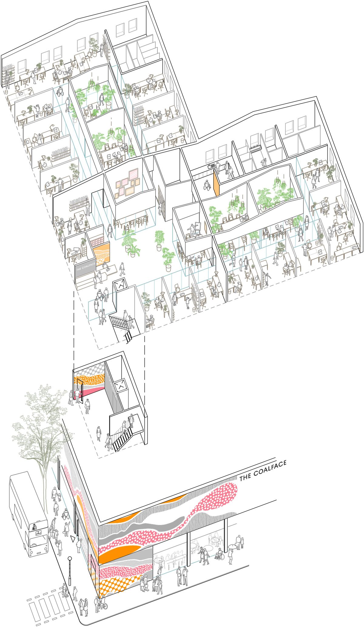 The workspace is now nearing completed and has been launched under the name 'The Coalface’, referencing the former railway coal depot that once occupied the site.