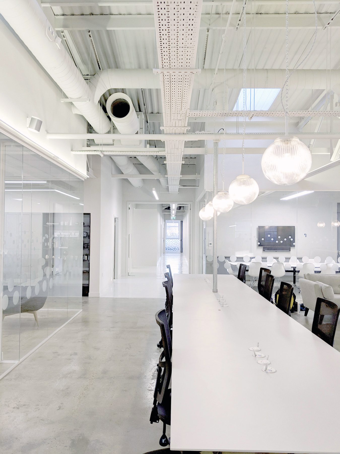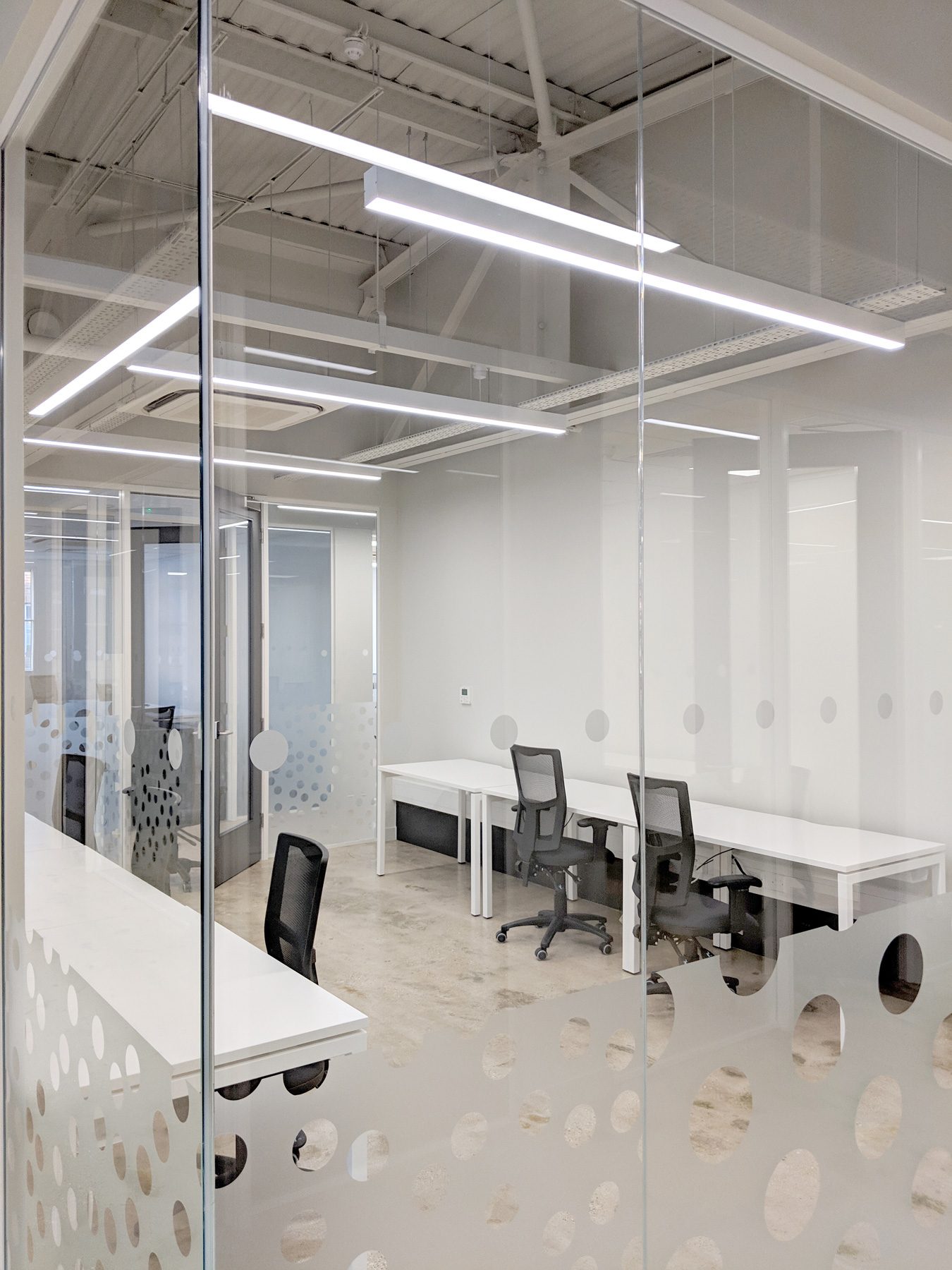 The project has involved the complete replanning of what were a series of rather dowdy offices on the first floor of the building to create a contemporary workspace which allows future flexibility: allowing future subdivision for separate drop-in, shared, or private office spaces. All services have been replaced and the building’s fabric has been selectively exposed to create a characterful sequence of spaces.
