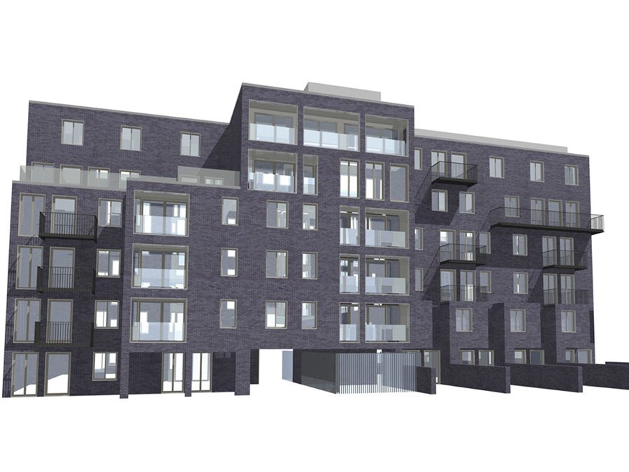 5th Studio were architects for a major new residential building on a constrained urban infill site in East London, opposite the listed Bow Quarter (the former Bryant + May Match Factory). Careful planning and typological innovation enabled the scheme to create 47 dwellings on the site – equivalent to a density of 470 dwellings per hectare (1370 habitable rooms), a relatively high density in relation to the adjacent Fairfield Road Conservation Area.