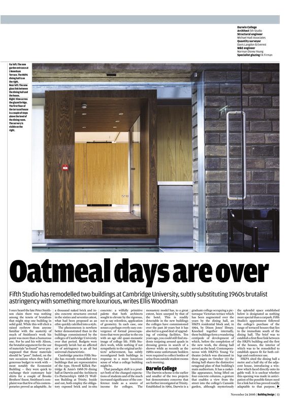 Darwin College is a graduate college founded in the mid-1960s, and has been made up in an ad hoc manner from a wide variety of buildings. This project made the first physical connection between the existing college buildings and a newly acquired terrace – linking them via a structural glass bridge to the dining hall.