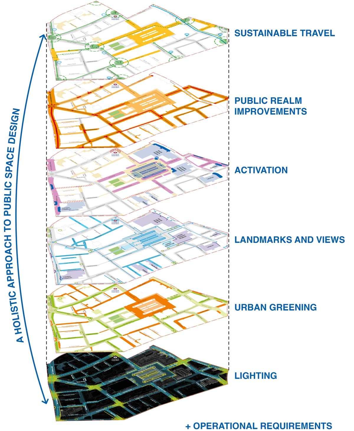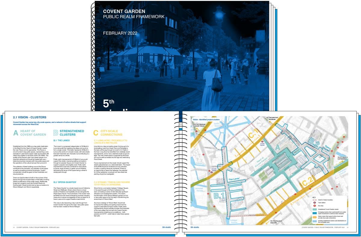 The Covent Garden Public Realm Framework has been developed as a blueprint to help inform and direct future schemes and changes to the public realm as they come forward in a considered and holistic way. Through the development of this document, we have set a vision, and parameters for future projects, which the council and stakeholders can work towards collectively.
