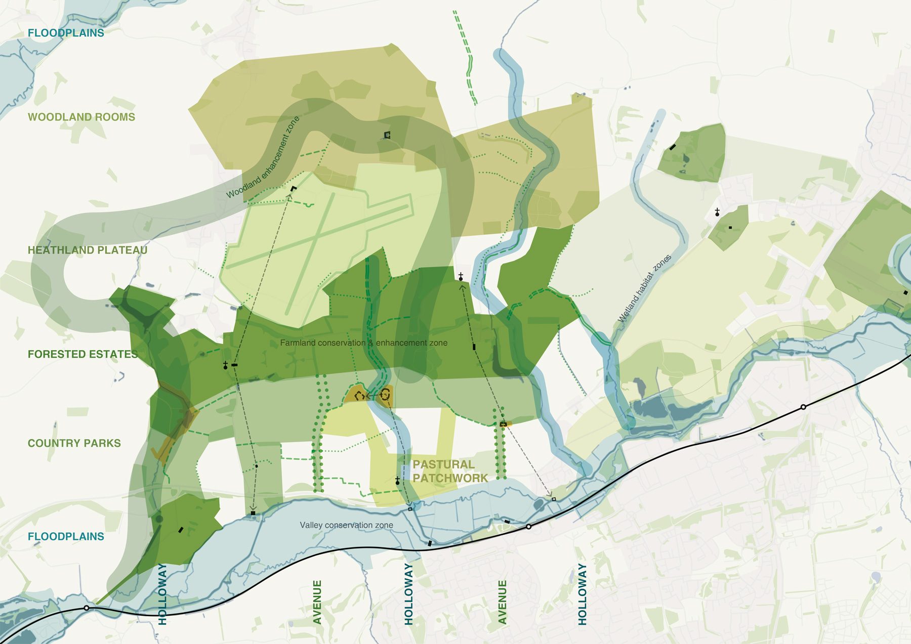 The area in question had previously been de-designated from London’s Green Belt, but there was strong community sentiment that the scheme that had followed was not doing enough to use the de-designated land well – and so funding was secured locally to allow an investigation of how the allocation of 10,000 homes might be designed differently, to integrate better with the surrounding landscape, existing settlements and heritage assets.