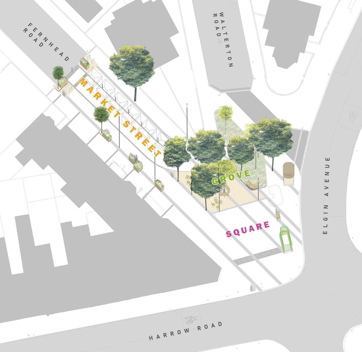 Harrow Road has a diverse and close-knit community but suffers from severances caused by the Westway and the railway corridor. Its inclusion in the North Westminster Economic Development Area recognises that regeneration and growth is required to improve employment and social opportunities. The Council and the community have established four objectives for the Harrow Road Place Plan: create a 21st century high street; improve access to public open space; ensure a socially sustainable future; benefit from future development. The concept masterplan and the delivery of the three key public spaces, aim to catalyse wider regeneration and investment to meet these objectives.