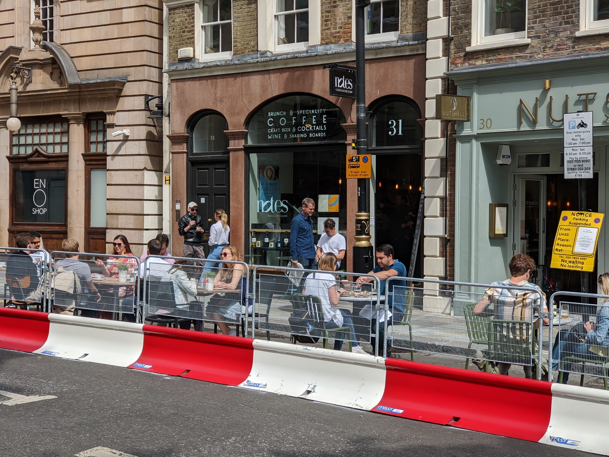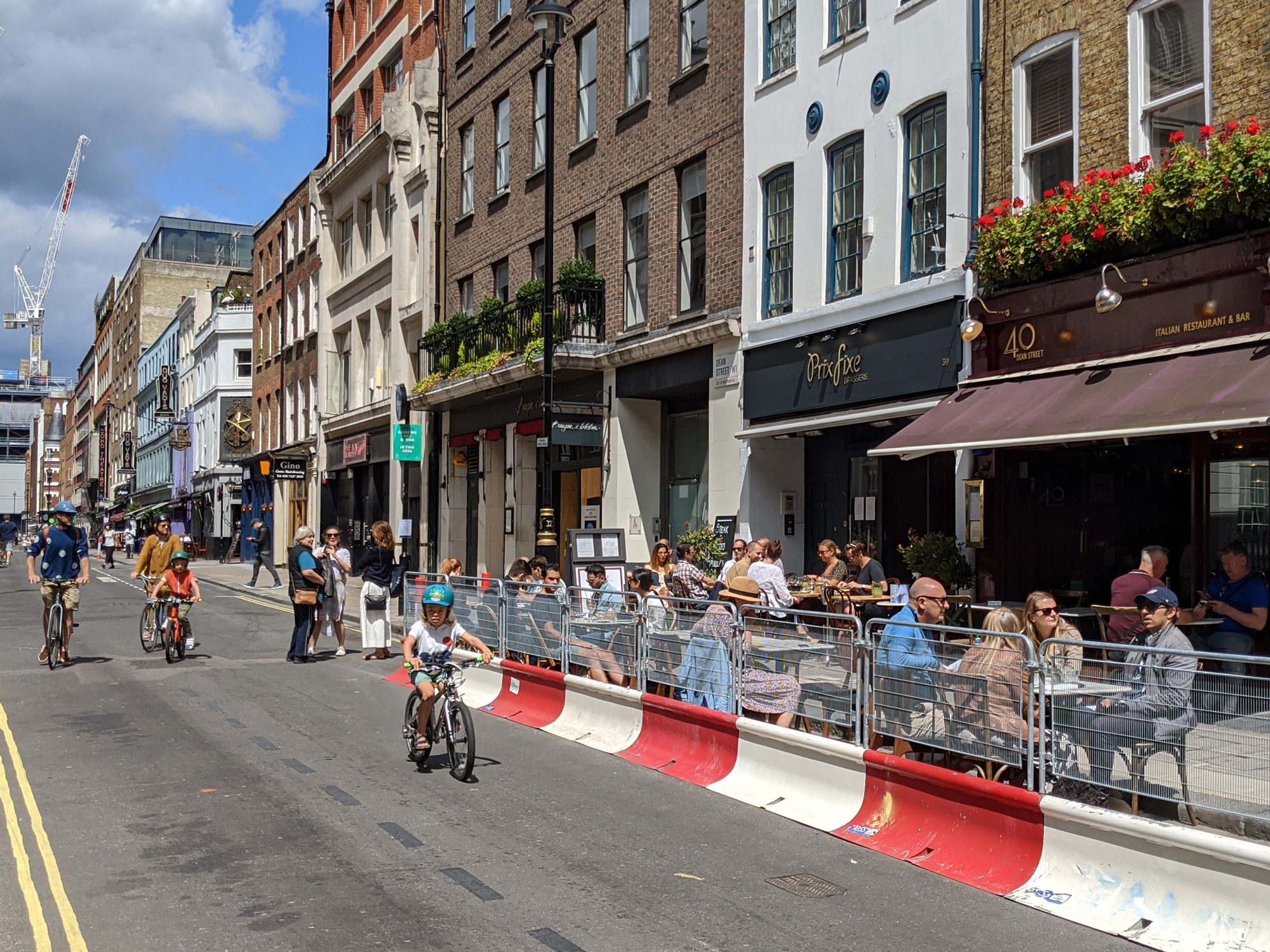 5th Studio’s work on public realm improvements focused initially on Soho, but also covered Covent Garden, Marylebone and Mayfair. The work developed options for al fresco dining, extending pavement space and in some cases allowed timed closure of roads to allow dining in the space of the street.