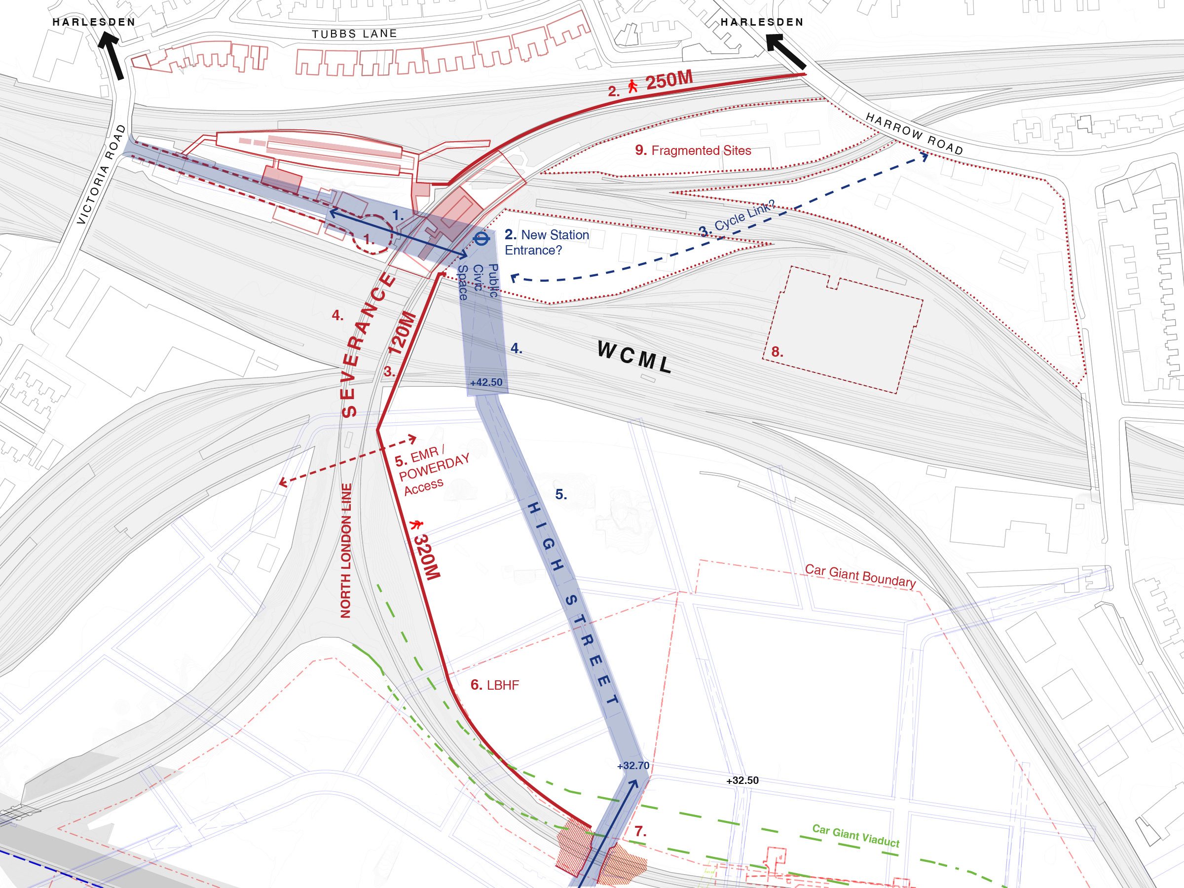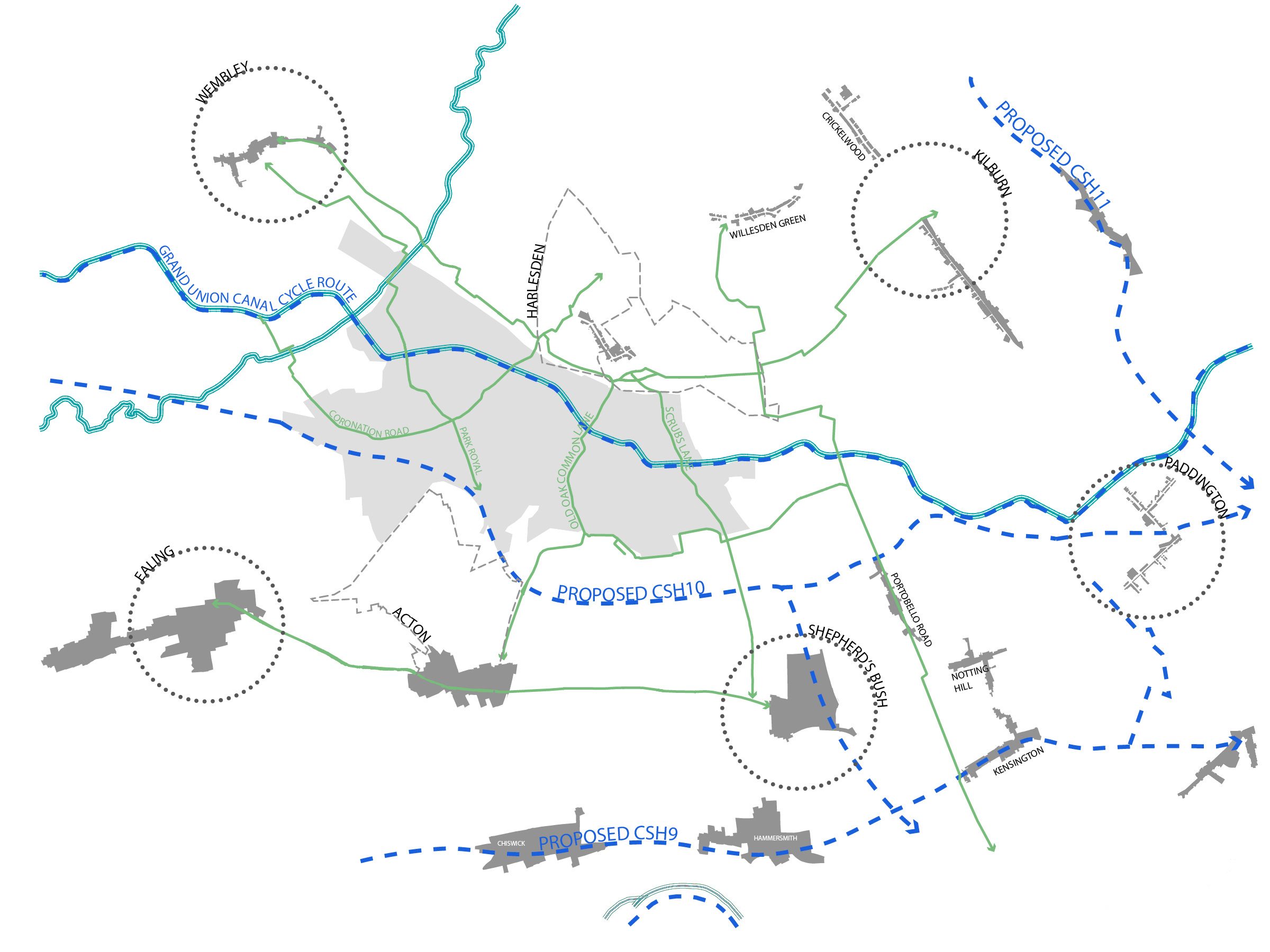 5th Studio produced a connectivity and public realm strategy as part of the in-depth review of the topographical and infrastructural constraints affecting the site. This has informed the local plan development by the Old Oak & Park Royal Development Corporation.