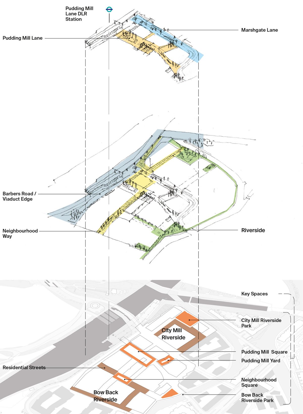 The Pudding Mill Lane site, adjacent to the DLR station, will be designed by Gort Scott, 5th Studio and Jonathan Cook Landscape Architects. This will form one of the most mixed legacy neighbourhood on the Olympic Park, with around 900 new homes, 36,000sqm of employment space and health & community facilities. A significant proportion of the housing is designed for families and will also include purpose-built accommodation for older people.