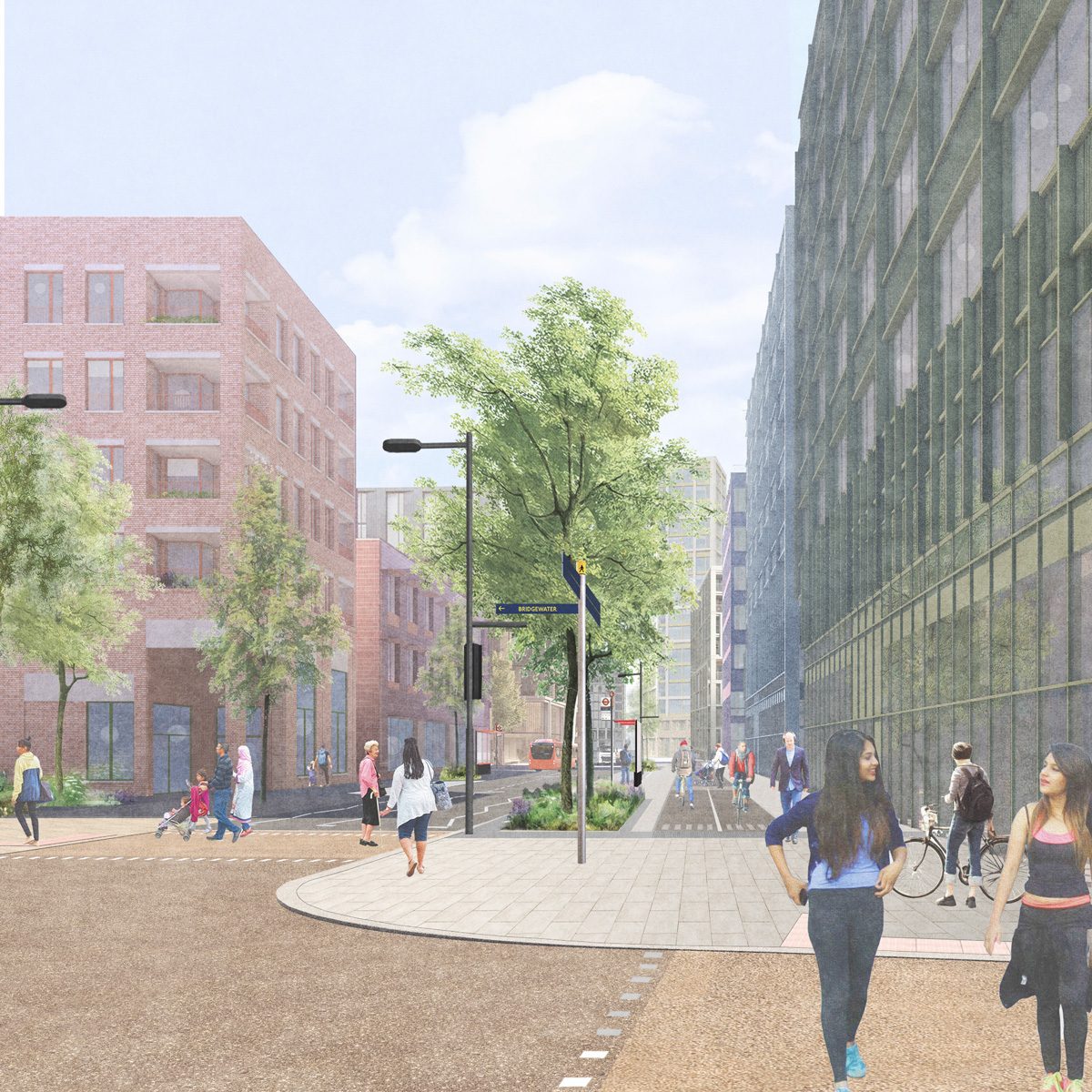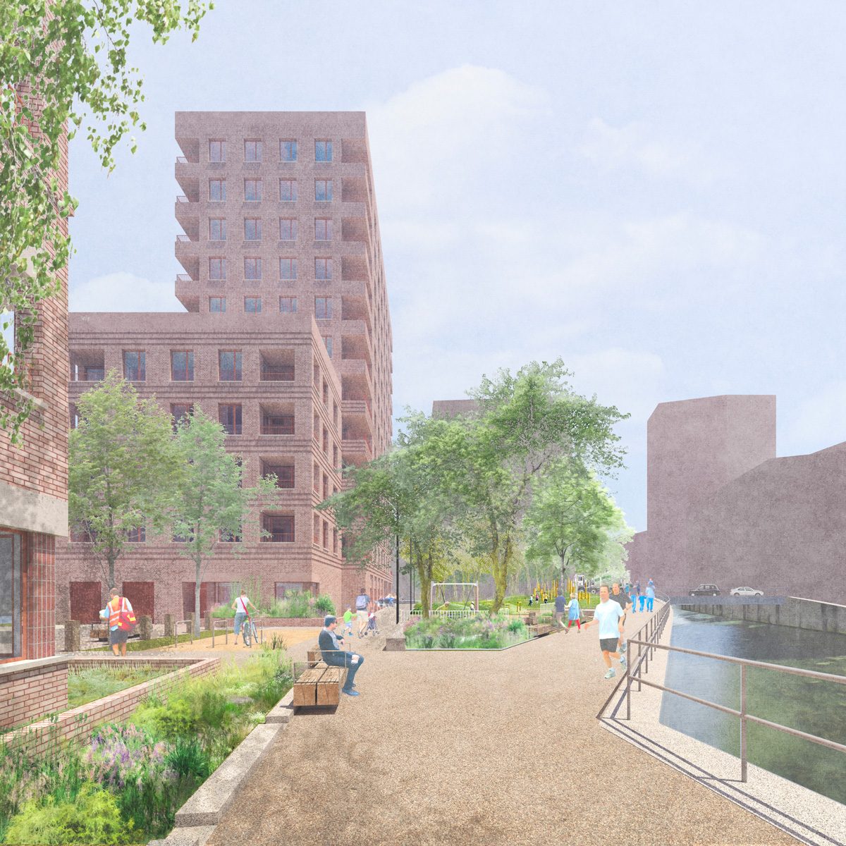 The Bridgewater site will be designed by Mikhail Riches, RCKa, William Matthews Associates and BBUK Landscape Architects. The plans for Bridgewater include C. 600 new homes.