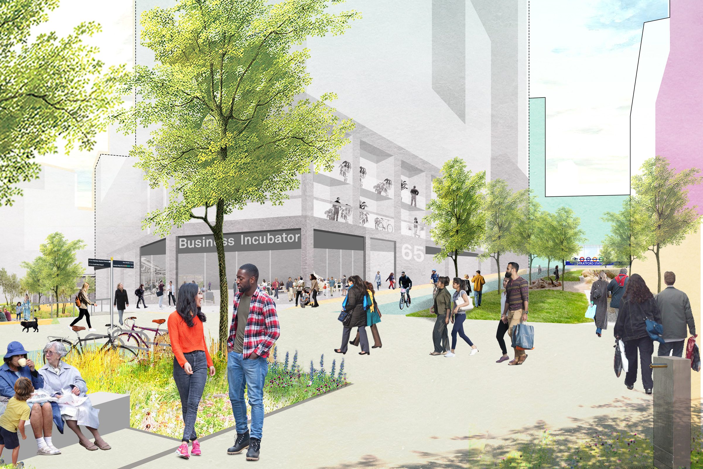 The project adopts a place-centred approach to London's infrastructure, addressing the severance of the rail corridor, uniting the Olympic Park with Stratford Town Centre, and acknowledging the growth of the park to the west, (including UCL East & Eastbank). It will transform what are currently abrasive service roads and spaces into a chain of green streets and squares, with space for 2,000 homes and 10,000 jobs.