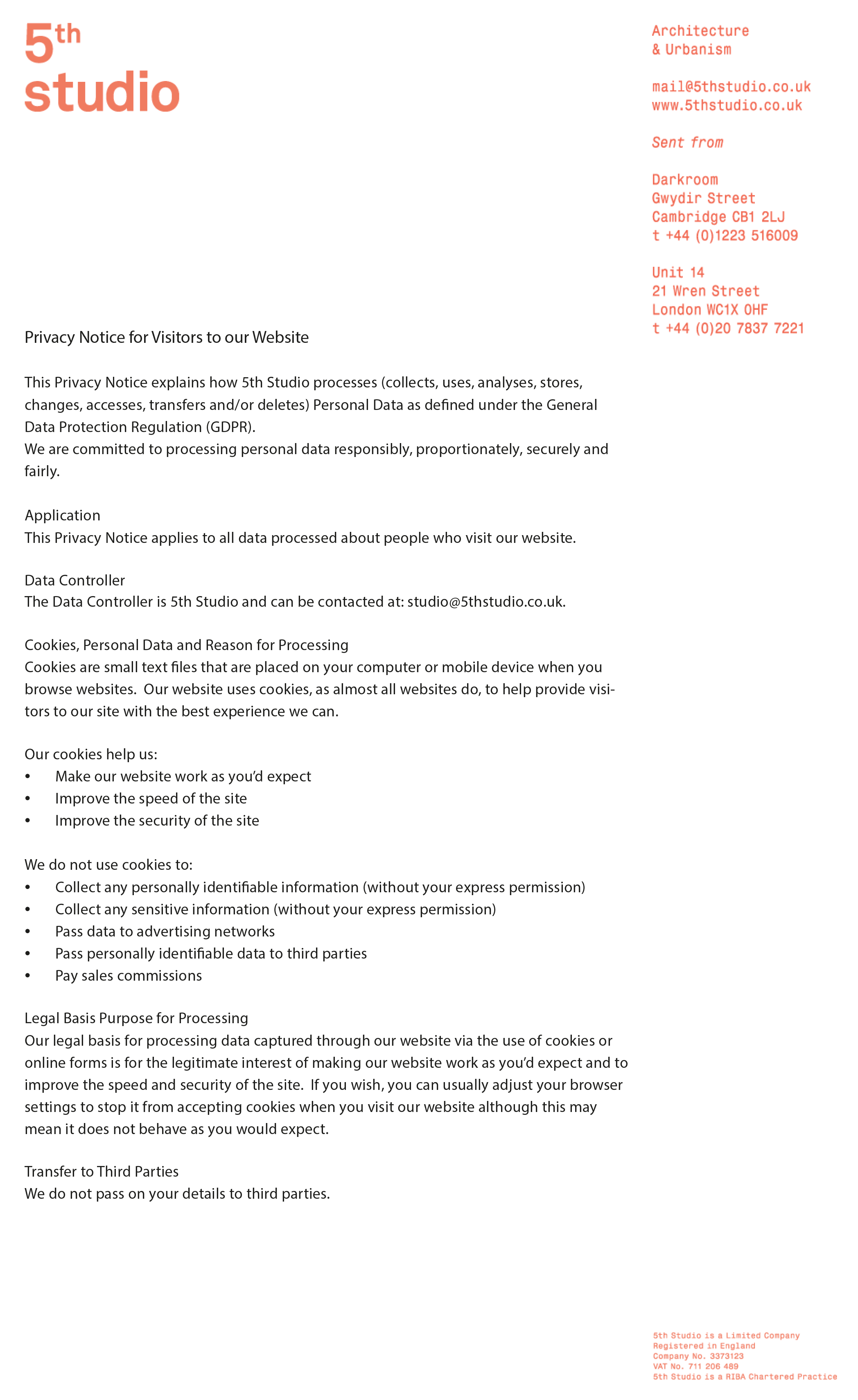 We are currently interested in receiving CVs and short portfolios from Part 2 Urban Designers. Please contact us via recruitment@5thstudio.co.uk